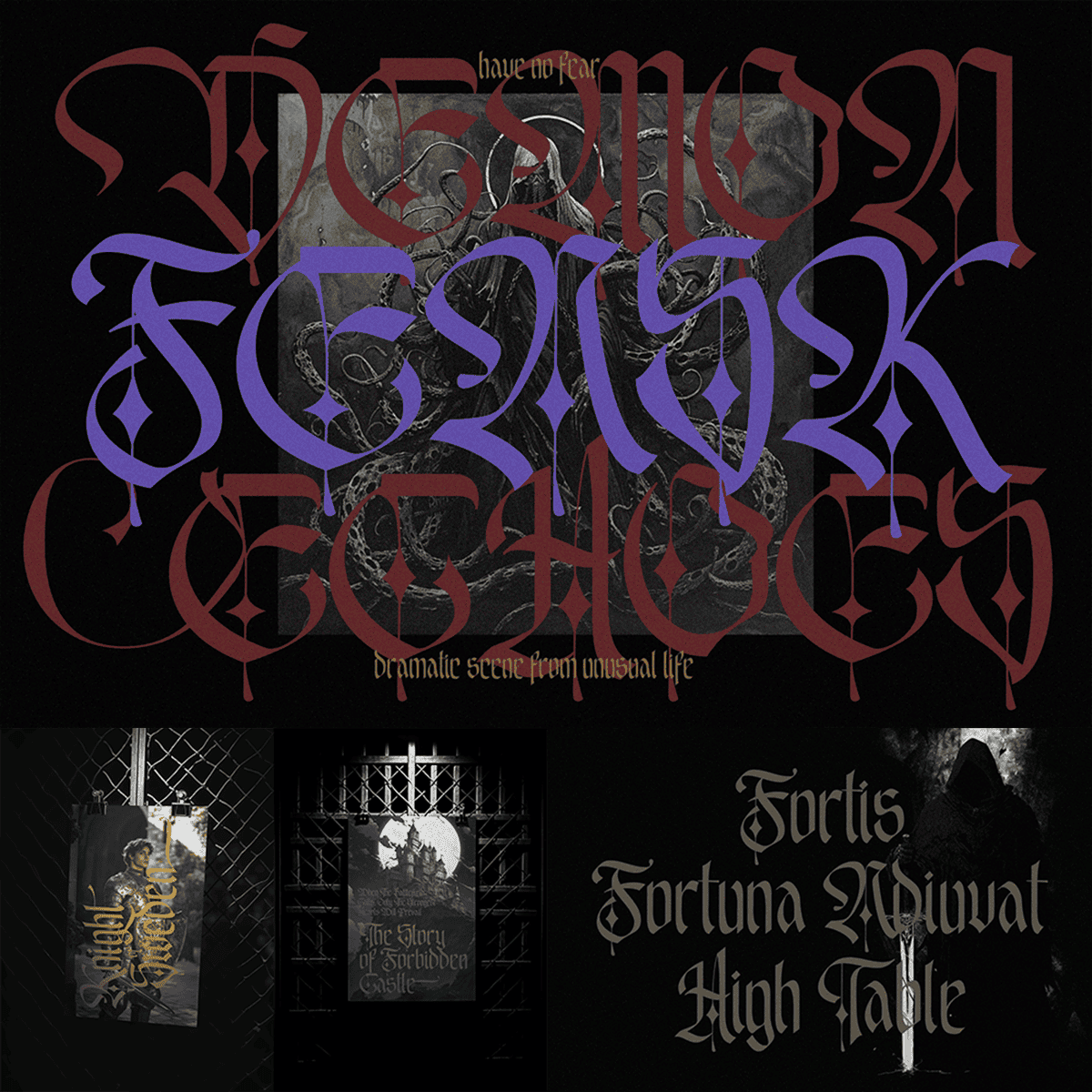 Create a dark and gothic design right away with the blackletter fonts we have specially prepared for you, unique lovers of the medieval world!
