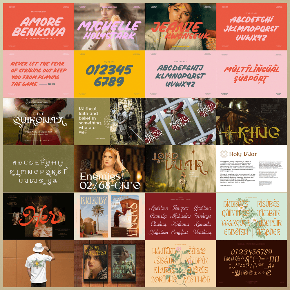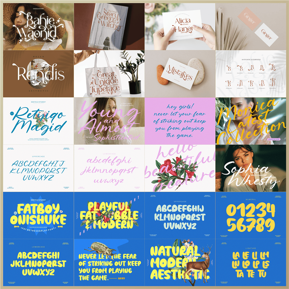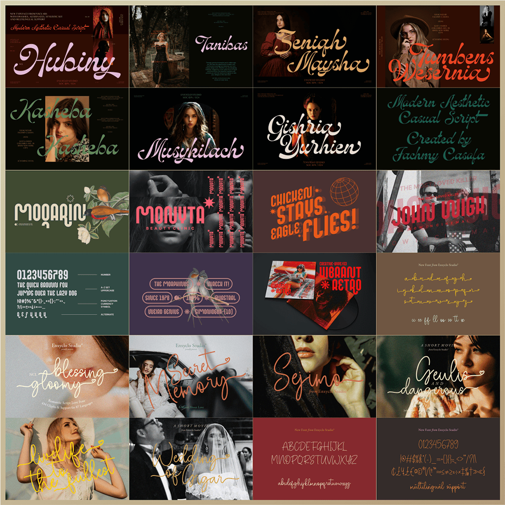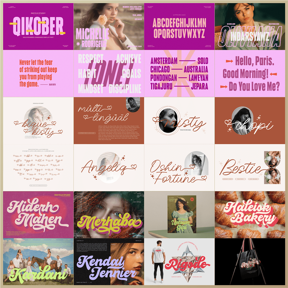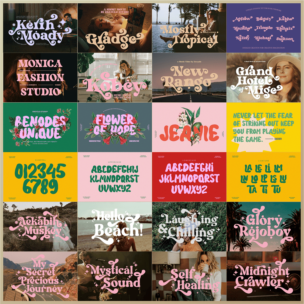 Revive the golden era of design with this beautifully nostalgic font bundle. Add personality, rhythm, and retro energy to your next project—and let your creativity shine with the 20 Retro Classic Font Bundle by Enxyclo Studio.