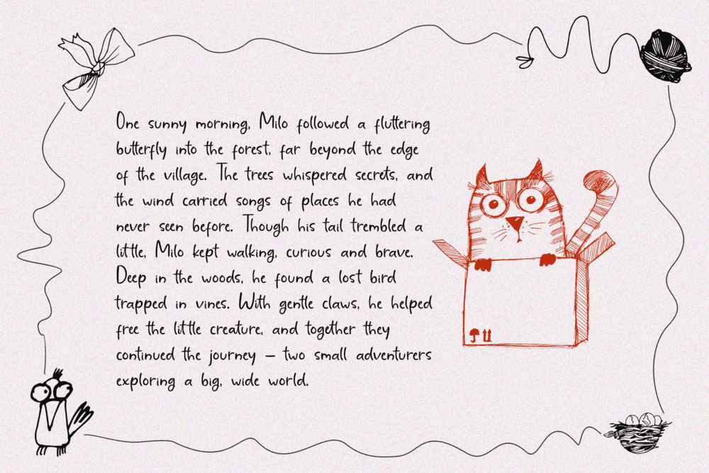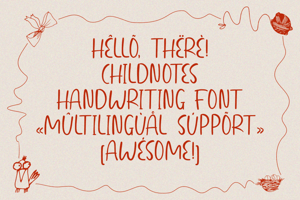 Childnotes Handwriting is a whimsical handwritten font inspired by the magic of storybook adventures and childhood imagination. Its playful curves and friendly strokes capture the warmth of children’s handwriting, making it perfect for fairytale worlds, picture books, and fantasy-inspired designs. This font brings a sense of wonder and creativity — every letter feels like part of a story waiting to be told. With a soft, approachable feel, Childnotes Handwriting adds charm and personality to every page, poster, or project. Whether you’re illustrating a children’s book, designing a storybook cover, or creating a fantasy-themed project, this font helps your ideas come to life with joy, imagination, and storytelling spirit.