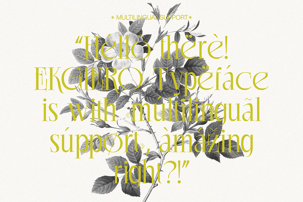 Made for fashion-forward designers and brands seeking to convey elegance and luxury, Ekgiero seamlessly blends classic serif elements with modern, stylistic features. Its extensive set of ligatures and glyphs enhances versatility, allowing you to produce exquisite typography that stands out in the crowded marketplace. Embrace sophistication with Ekgiero, the font that defines lavish elegance for your logo, brand, skincare packaging, and more.