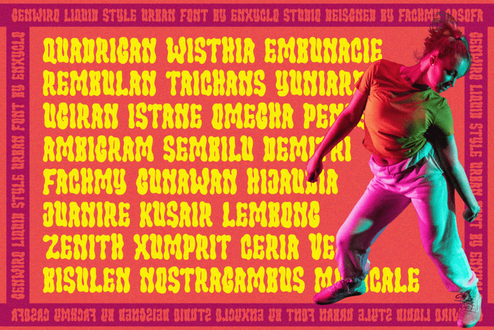 Genwiro is a Liquid Expressive Bold Urban Font that flows with energy, attitude, and artistic confidence. Hand-drawn with a free-flowing motion, it captures the rhythm of modern street culture and the raw beauty of urban creativity. Each stroke moves like liquid — bold, dynamic, and full of emotion. The letters drip and wave with personality, creating a fluid texture that stands out on every surface. This makes Genwiro the perfect choice for brands that want to express bold individuality and fearless style. From streetwear logos to editorial headlines, Genwiro brings a strong visual voice that feels authentic, rebellious, and fashion-forward. Whether you’re crafting a stylish brand, a music poster, or a bold social media layout, this font delivers a dynamic flow that commands attention.