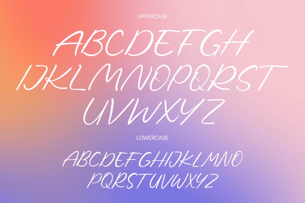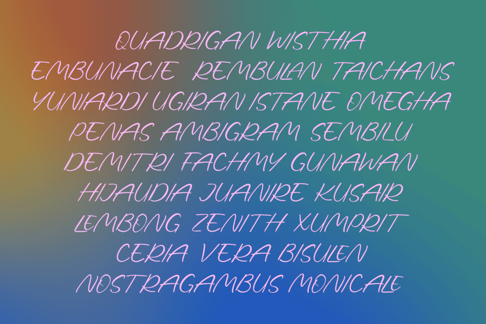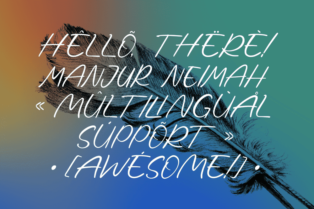 MANJUR NEIMAH is a vibrant, energetic brush font designed to bring a bold personality to your creative projects. Inspired by retro hand-lettered signs and modern brush calligraphy, this font fuses nostalgic flair with contemporary aesthetics. Each letter is crafted with sweeping strokes and expressive curves, perfect for making your headlines pop and your branding stand out.