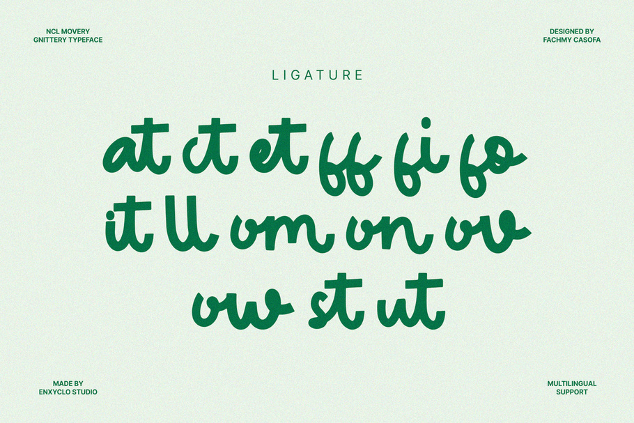 Movery Gnittery is a playful handwritten font. Masterfully designed to become a true favorite, this font has the potential to bring each of your creative ideas to the highest level! It was purposely crafted to be used in large point sizes, although it doesn’t lose its magic in small point sizes. It is perfect for headline, digital ads, magazines, website, poster, branding, and logos. No matter the topic, this font will be an incredible asset to your fonts’ library, as it has the potential to elevate any creation. With this beautiful font, absolutely you can make your project stand out from the rest.