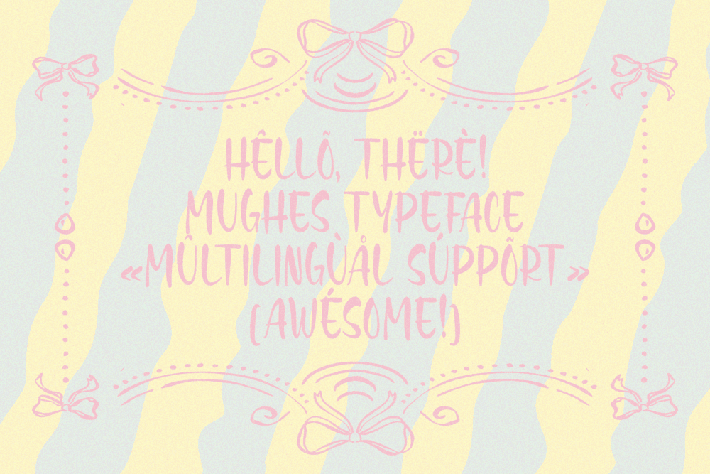 MUGHES is a fun display font filled with quirky charm and joyful energy. Designed with curly, handmade letterforms, it delivers a cheerful, funny, and funky personality that instantly brings a smile to your designs. Its playful curves and soft imperfections create a cute yet fancy look, perfect for projects that need warmth and imagination. Inspired by fairytale worlds, magical fantasies, and dreamy storytelling, MUGHES feels light, whimsical, and full of wonder. The font blends vintage country charm with a cozy shabby chic aesthetic, making it ideal for labels, scrapbook designs, home décor, and creative handmade projects. Whether you’re crafting something imaginative, charming, or simply lovely, MUGHES turns words into a delightful visual experience.
